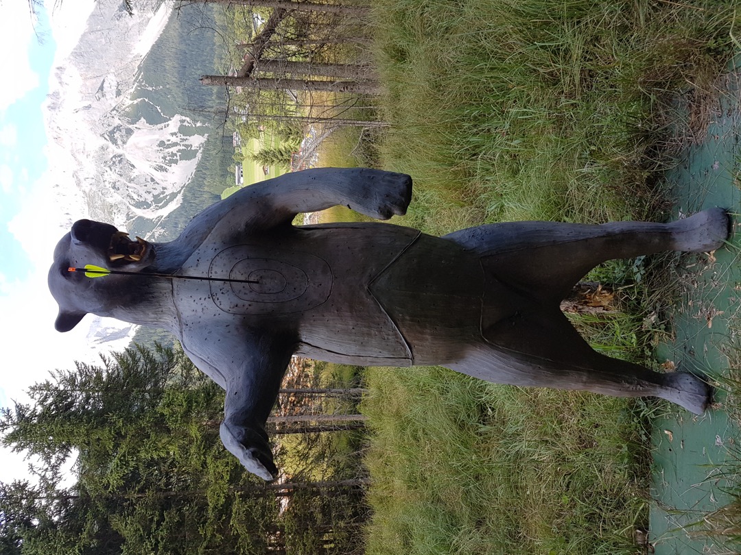 Genial ist auch der 3D-Parcours, denn er ist an Abwechslung kaum zu überbieten. Hier finden erfahrenen Schützen alles, was ihr Herz begehrt. Über 28 Stationen geht die Runde, die im Hochmoor-Gelände am Ramsauer Rittisberg ihren Ausgang nimmt. Die ersten Abschusspflöcke warten im flachen Gelände, bevor es dann über den steileren Teil aufwärts geht. Der Anstieg ist teilweise sehr anspruchsvoll, aber mit gutem Schuhwerk gut zu bewältigen. Entlang des Weges werden die Bogensportler mit wunderbaren 3D-Zielen für ihre Mühen belohnt, und obendrein bietet sich eine prächtige Aussicht auf die Dachstein-Südwände, die den steilen Aufstieg vergessen lässt. Nach dem Abstieg geht es wieder zum wunderschönen See, der übrigens ebenfalls in den Parcours miteingebunden ist. Hier haben wir einen Schwimmsteg aufgebaut, von dem aus abgeschossen wird.